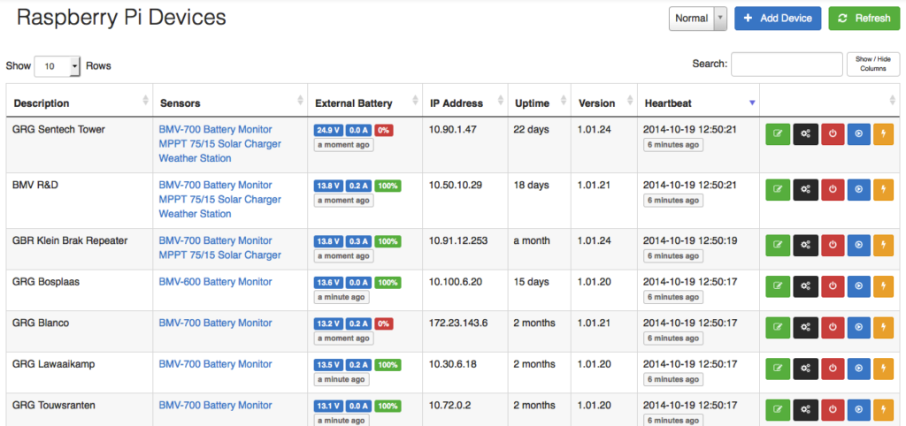 DataTill connects to devices such as Mikrotik & Ubiquiti routers & radios, Raspberry Pi microcomputers and Micro Instruments NPM units at your sites, allowing you to view real-time usage information such as connected radios, CCQ, throughput, plus power related data such as power supply, solar or battery voltages, and be alerted to any issues.